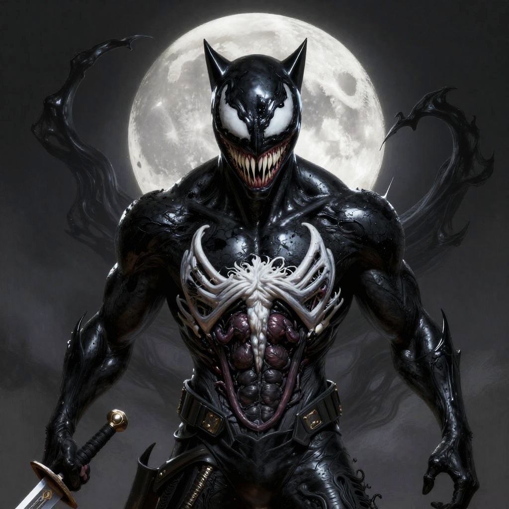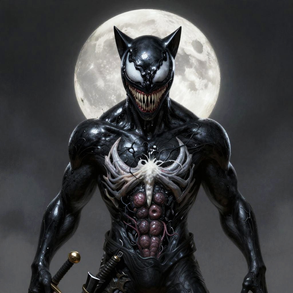 Cat black and silver abstract beauty, centered, looking at the camera, approaching perfection, dynamic, moonlight, highly detailed, digital painting, artstation, venom costume, concept art, smooth, sharp focus, illustration, art by Carne Griffiths and Wadim Kashin, (very detailed), (phone wallpaper:2, Wallpaper, 8K, very detailed) black eyes, black hair, greyscale, guts \(berserk\), male mole, monochrome, solo, sword, weapon, ((8K wallpaper, super detailed, highres:2)), high quality, photorealistic, unreal engine, high res