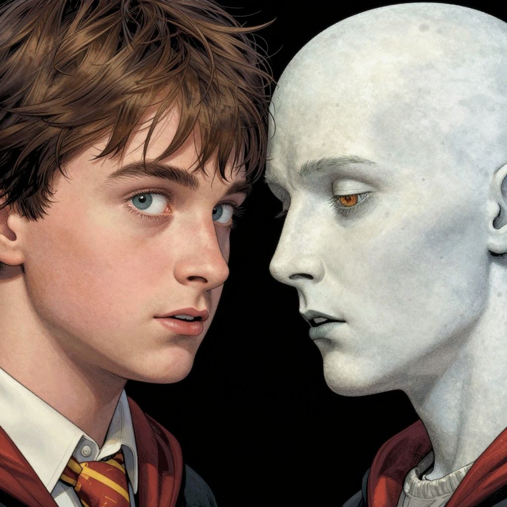 In one frame harry potter with sandman in the sandman comic, symmetrical faces, beautiful faces, by neil gaiman, by dave mckean, comics sandman, small details, clear faces, high detail