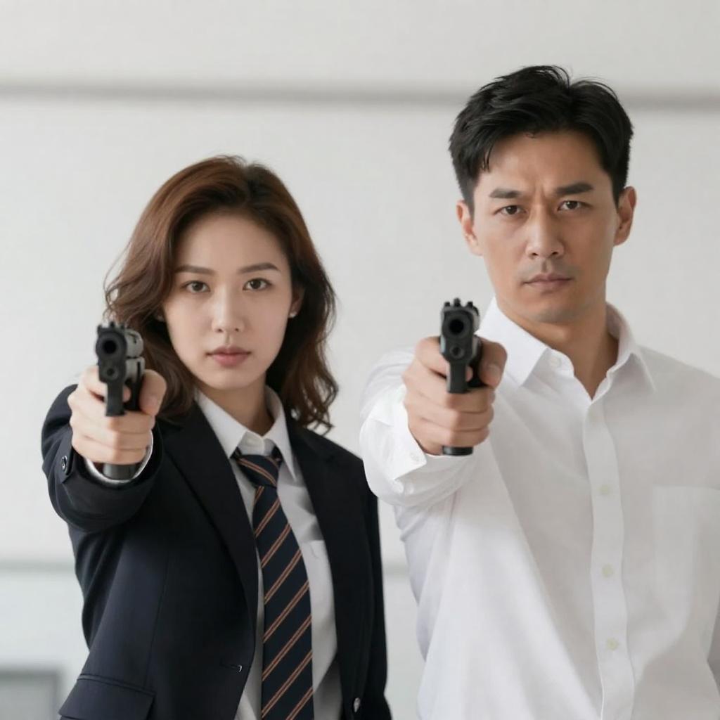 Couple with Handguns on Yellow Floor
