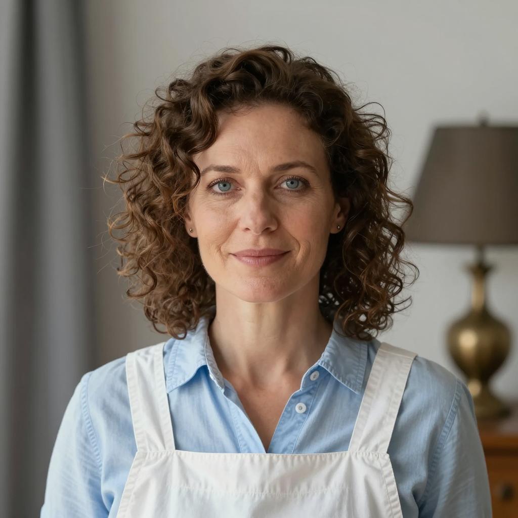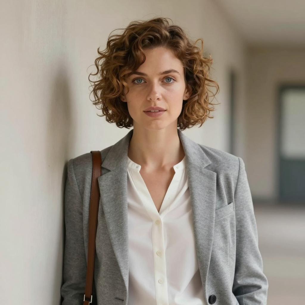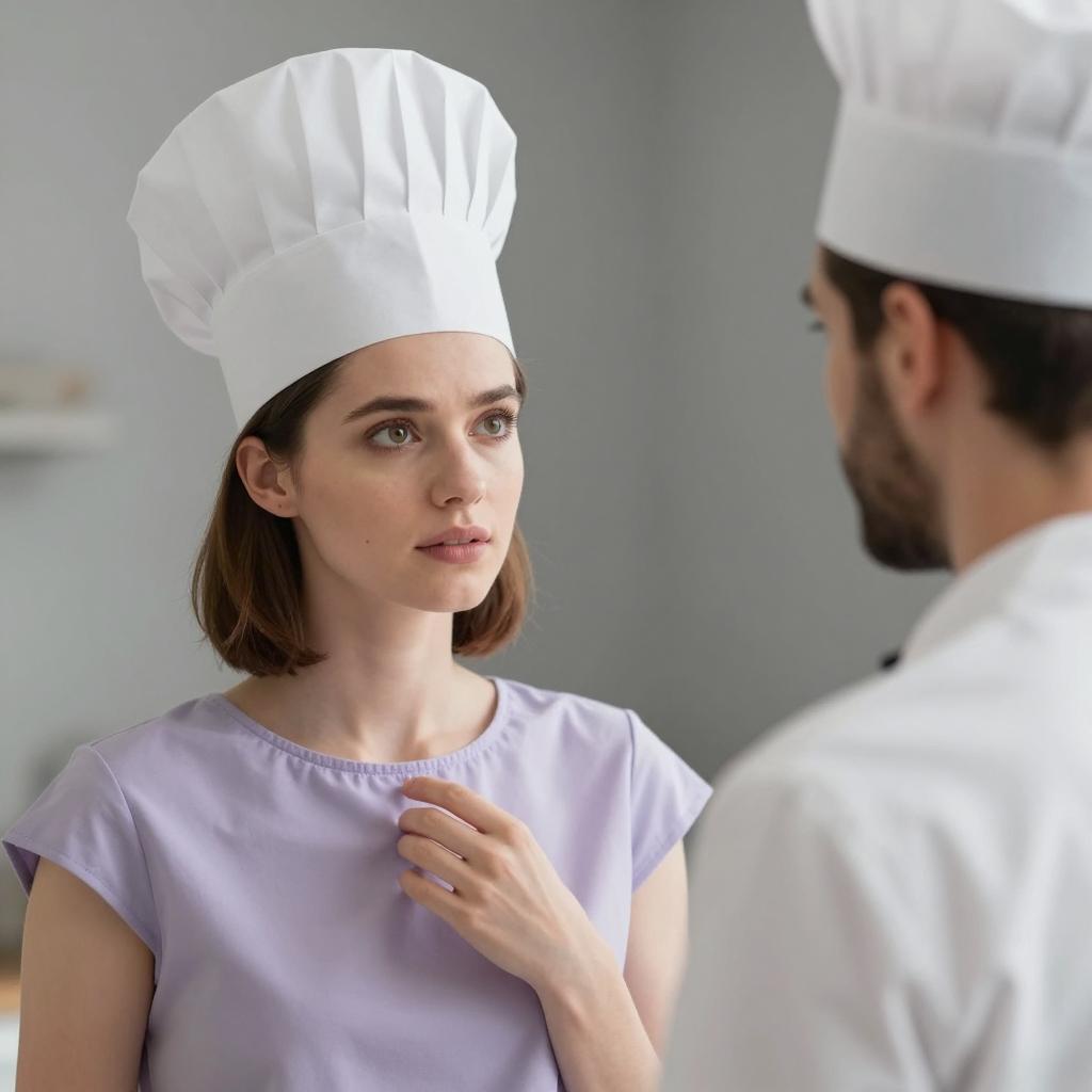 Charming Woman in Industrial Kitchen Scene
