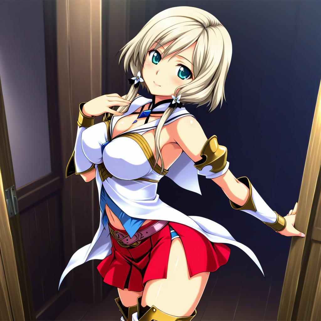 Ashelia b'nargin dalmasca, final fantasy, 1girl, short hair, blonde hair, thighhighs, miniskirt, by artist mikagami sou, illustrious