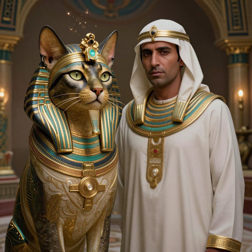 Majestic Egyptian Gentleman with Regal Cat