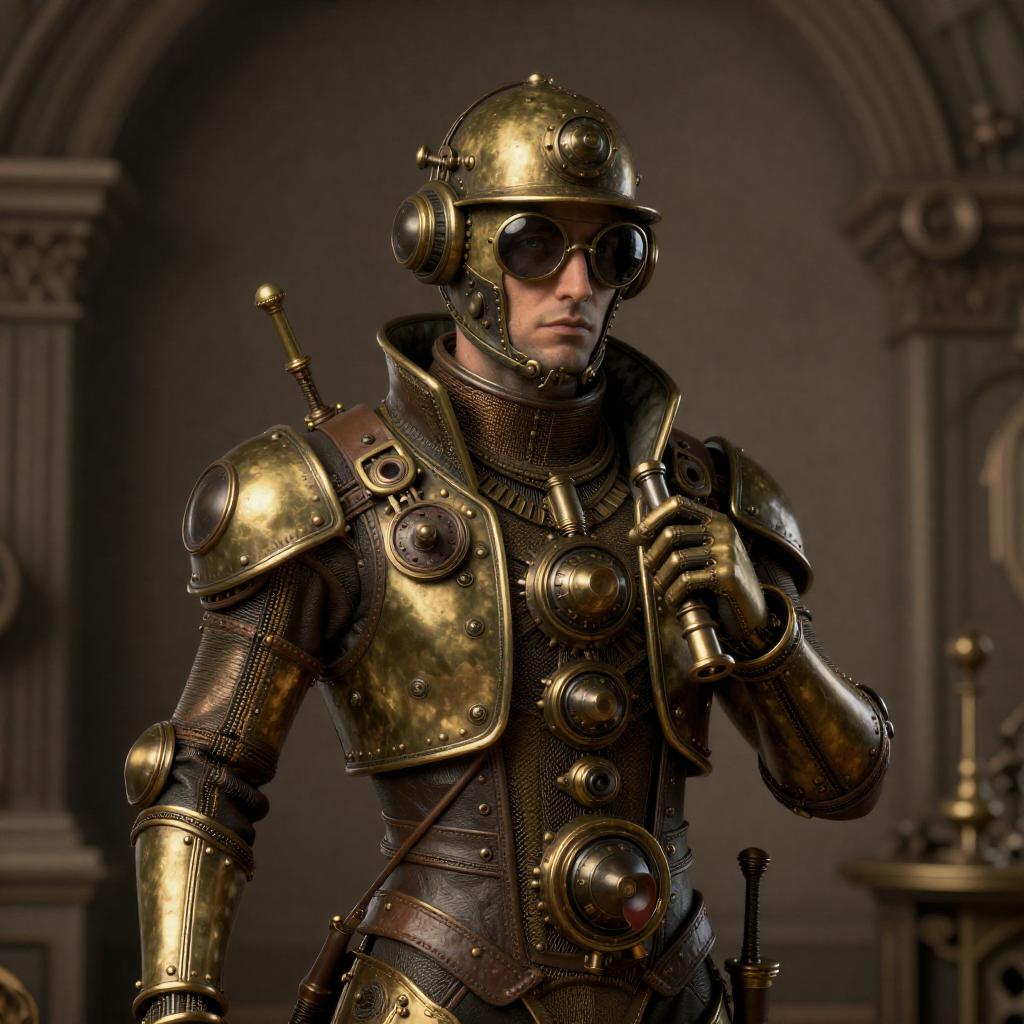 Hyper-Realistic Steampunk Inventor in Brass