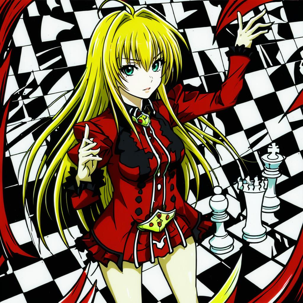 Arakune, blazblue, 1girl, monster, blonde hair, large breasts, by artist usatarou, anime