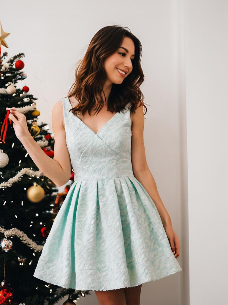 Woman in Festive Christmas Dress