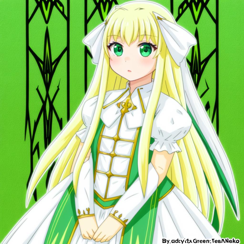 Asseylum vers allusia, aldnoah.zero, 1girl, green eyes, blonde hair, long hair, by artist greenteaneko, anime