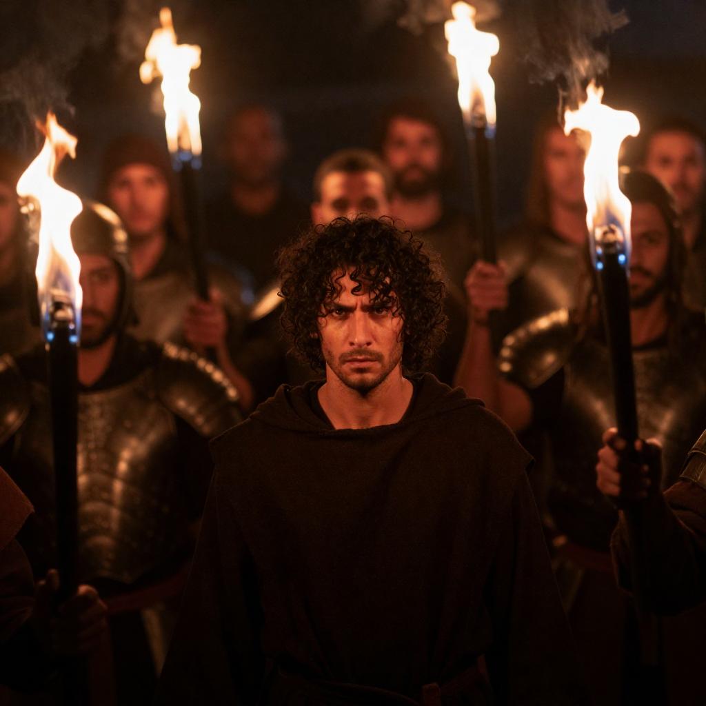 Medieval Portrait with Torchlight and Shadows