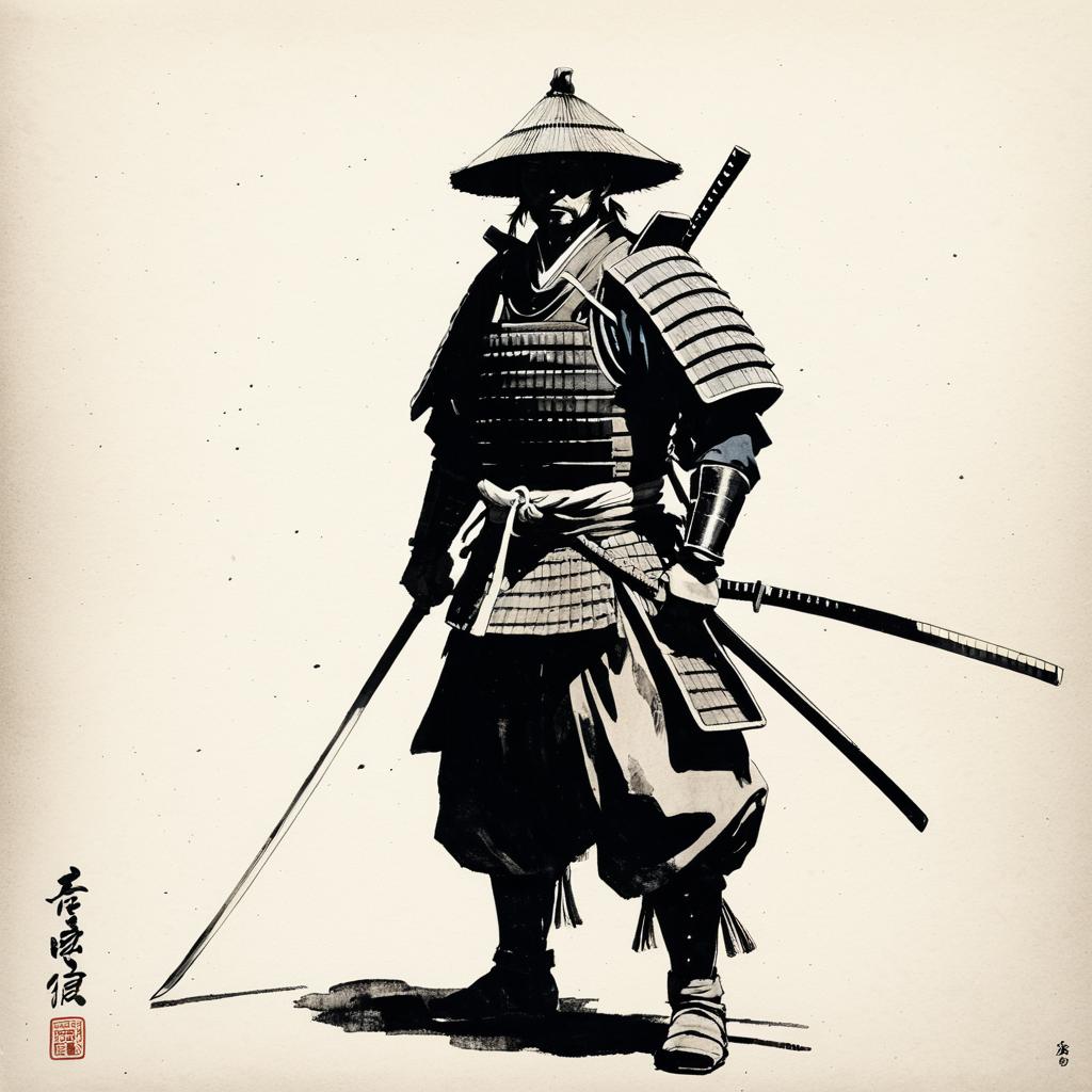 Minimalist Samurai Warrior Portrait in Ink