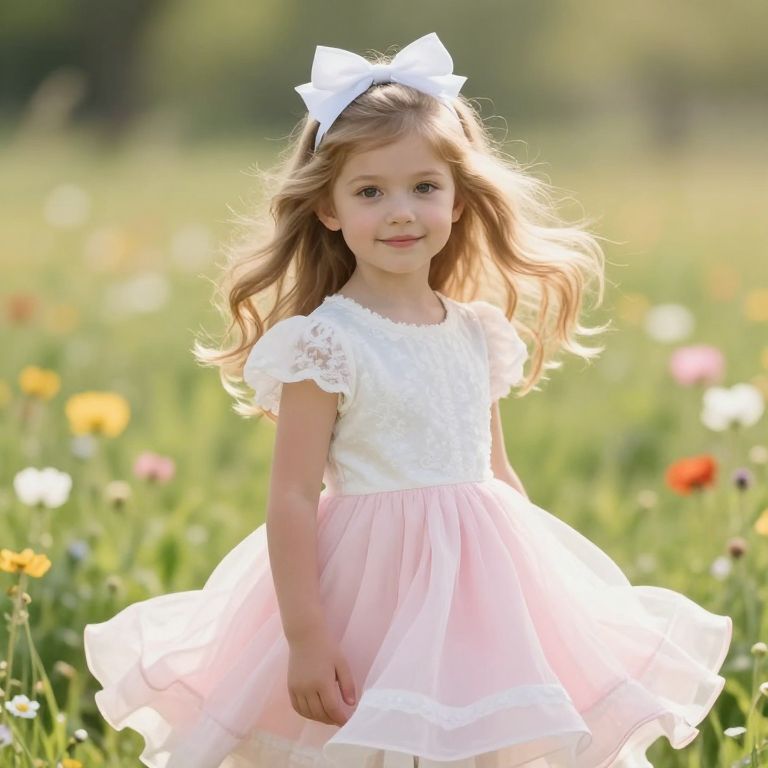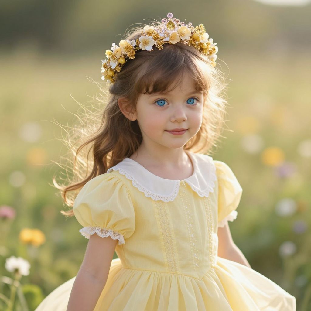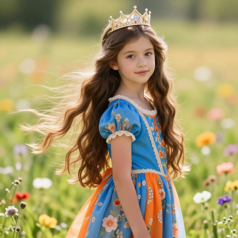 Portrait of a Nordic blond girl with braided hair, wearing a floral crown, surrounded by wildflowers in a serene summer meadow, natural light and soft focus, photorealistic