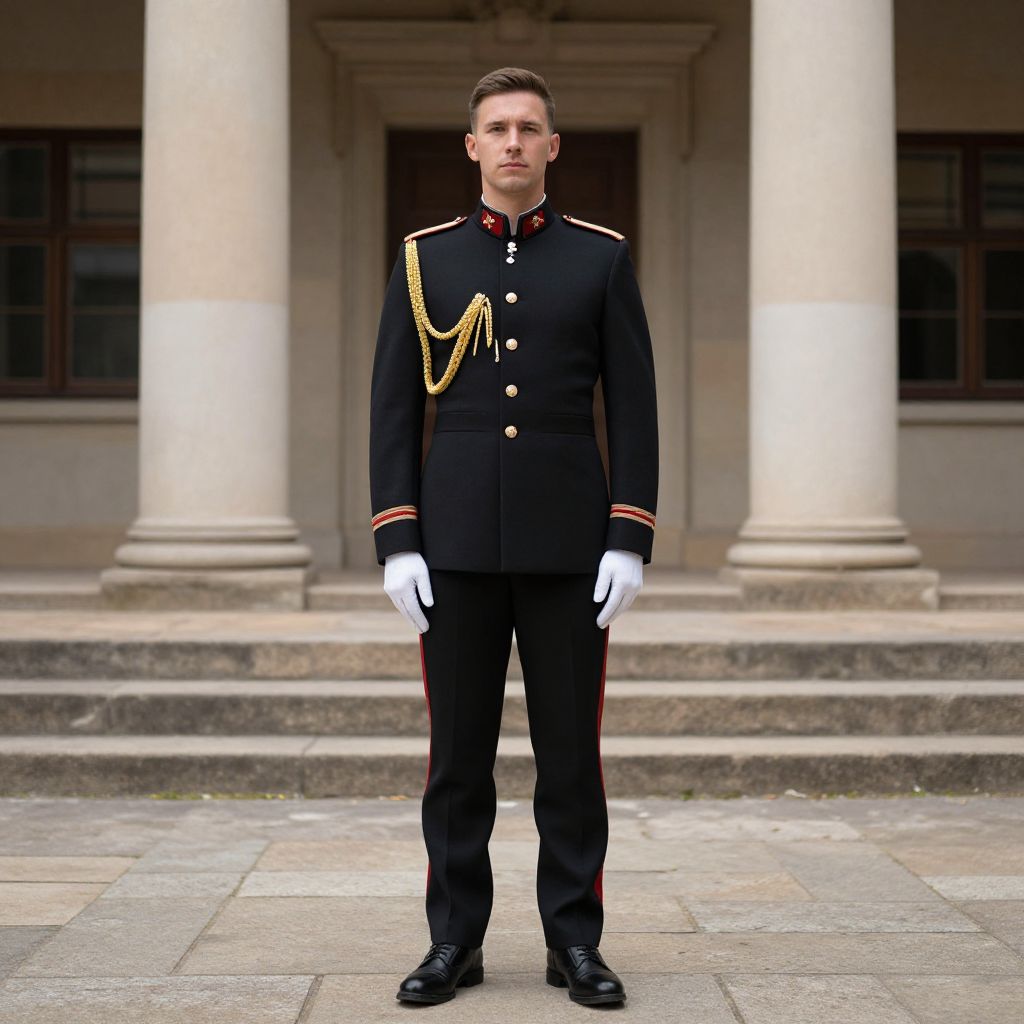 Military General Costume, image of a man in a military uniform standing in front of a building