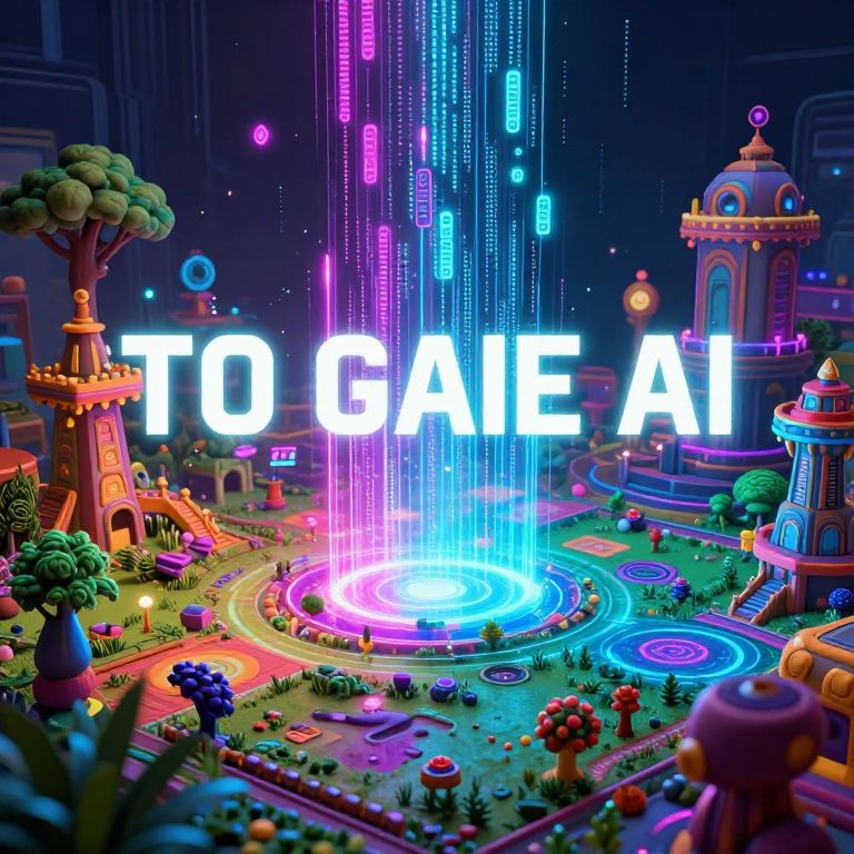 Text to game AI concept, futuristic digital interface with glowing code streams transforming into vivid 3D game landscapes, vibrant neon colors, intricate data patterns merging with fantasy game elements, high-tech virtual reality environment, ultra-detailed style