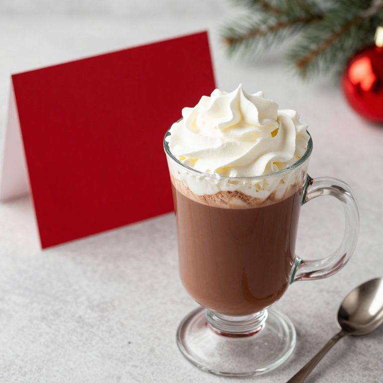Red Velvet Hot Chocolate topped with a dollop of whipped cream is luxurious and rich and the perfect treat when signing holiday cards.