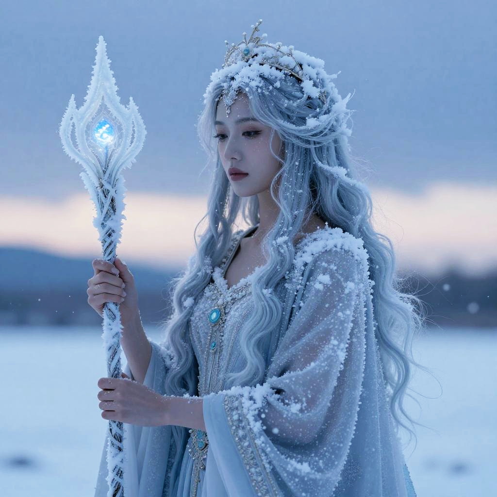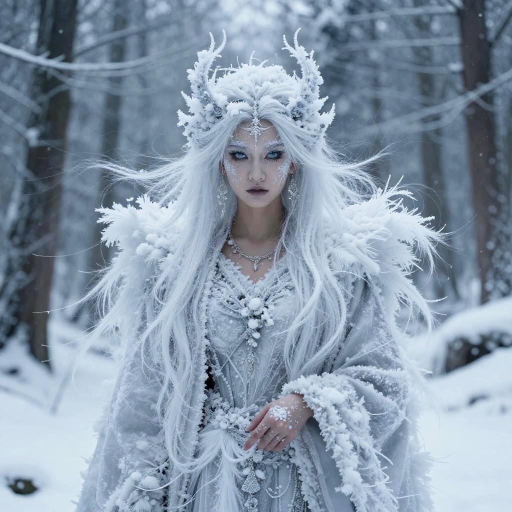 Majestic Snow Deity in Frozen Forest