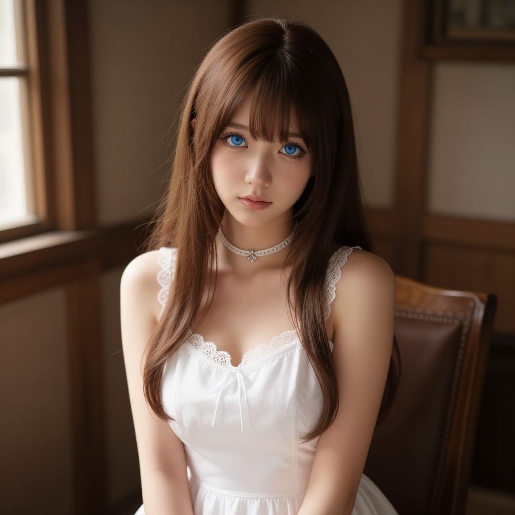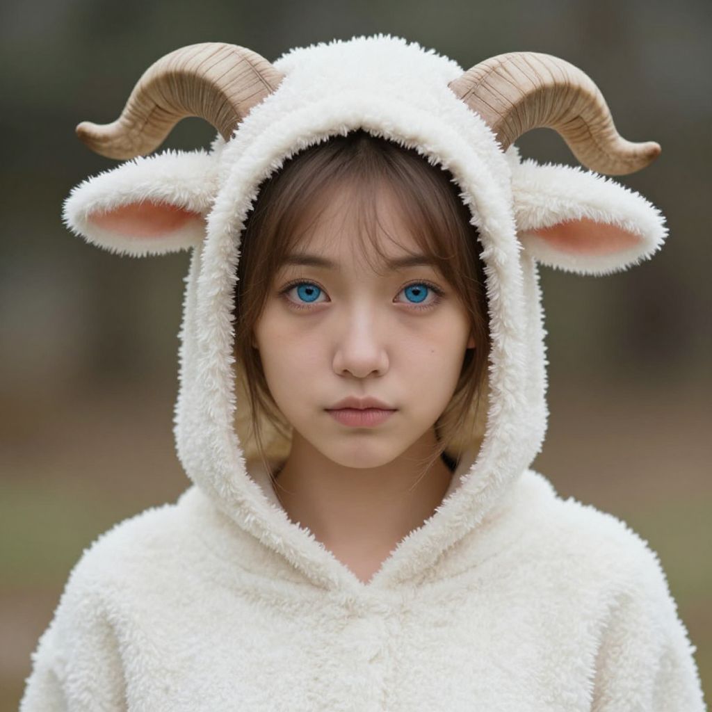 "kid curious george costume, 1girl, brown hair, looking at viewer, solo, hood, realistic, cosplay, blurry, animal costume, kigurumi, blurry background, blue eyes, upper body Realistic photo of casual sexy person with pretty face"