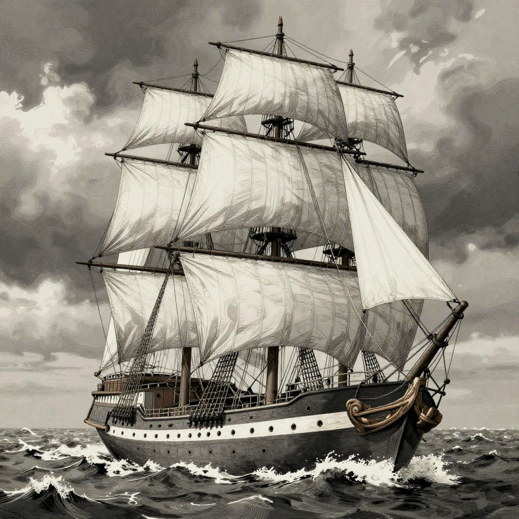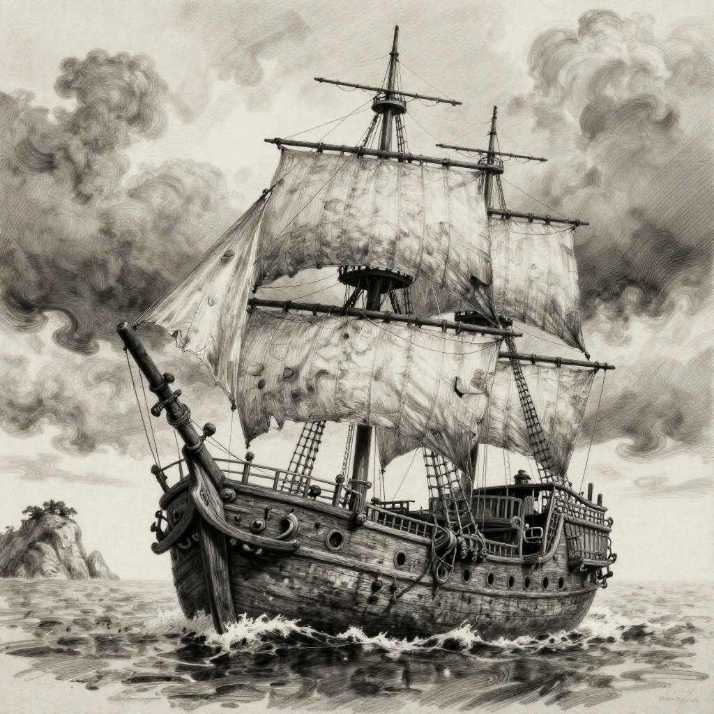 Mysterious Pirate Ship Pencil Sketch