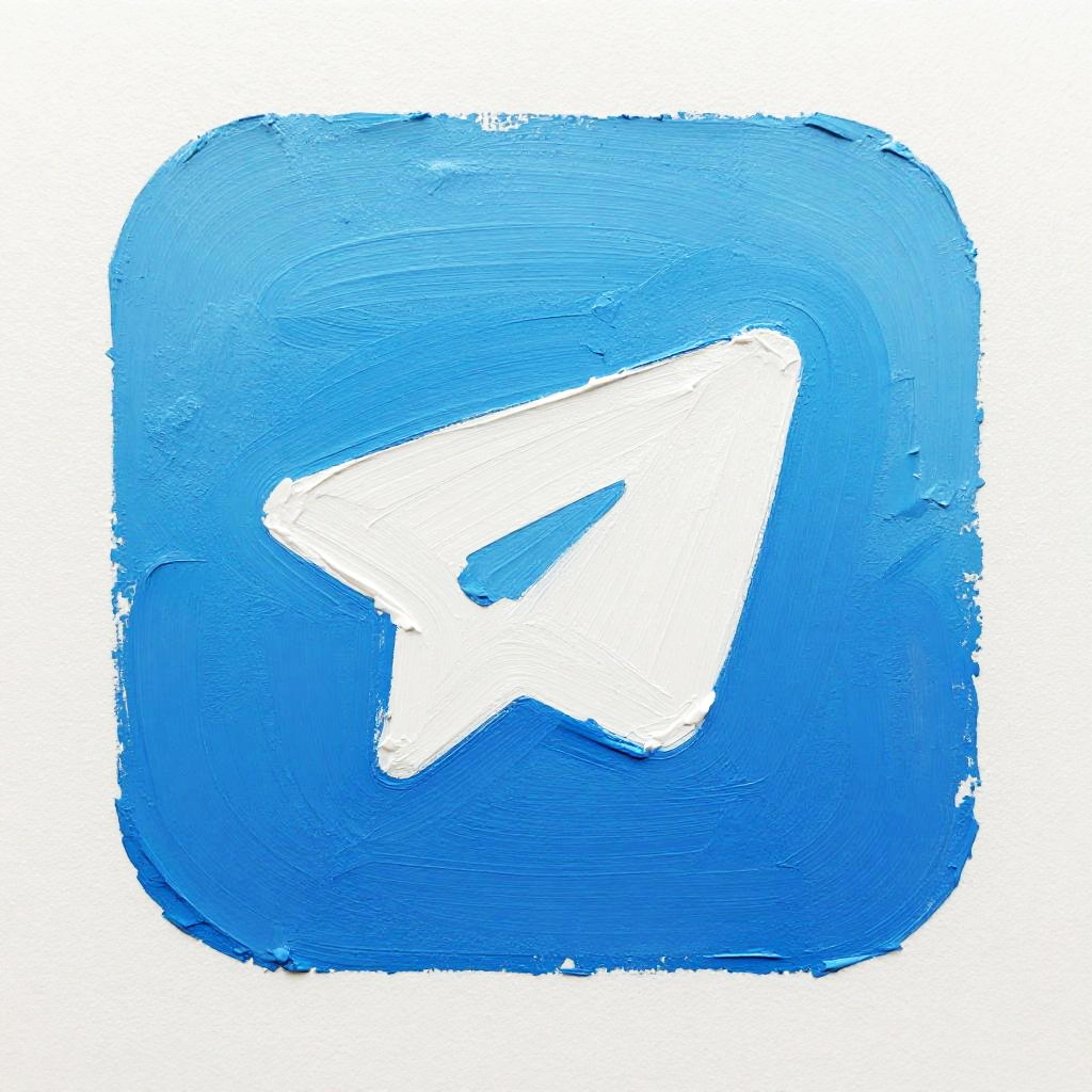 Telegram symbol painted with vivid brush strokes on a textured canvas, abstract art style blending blues and whites, expressive and creative visual appeal