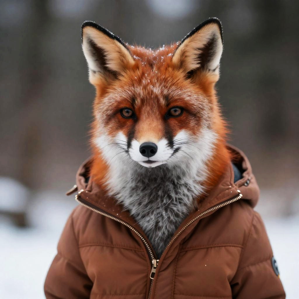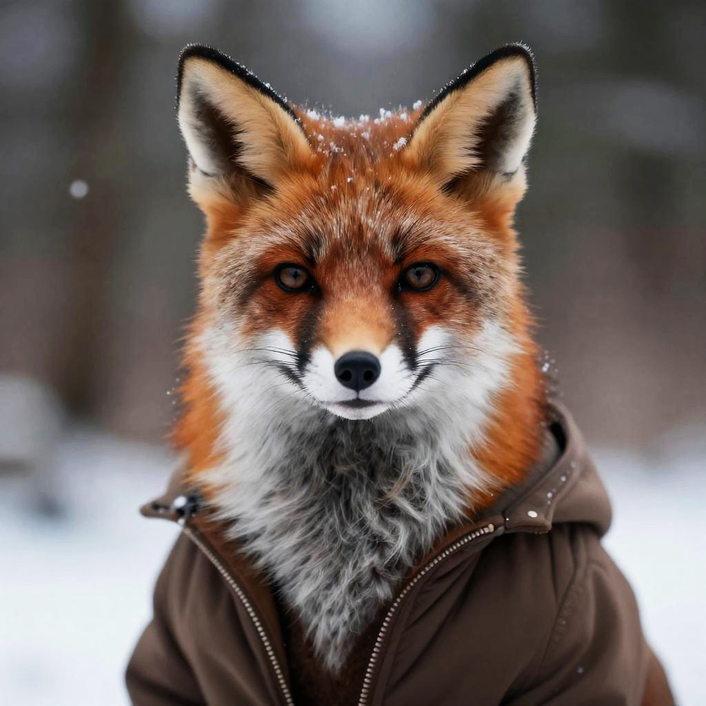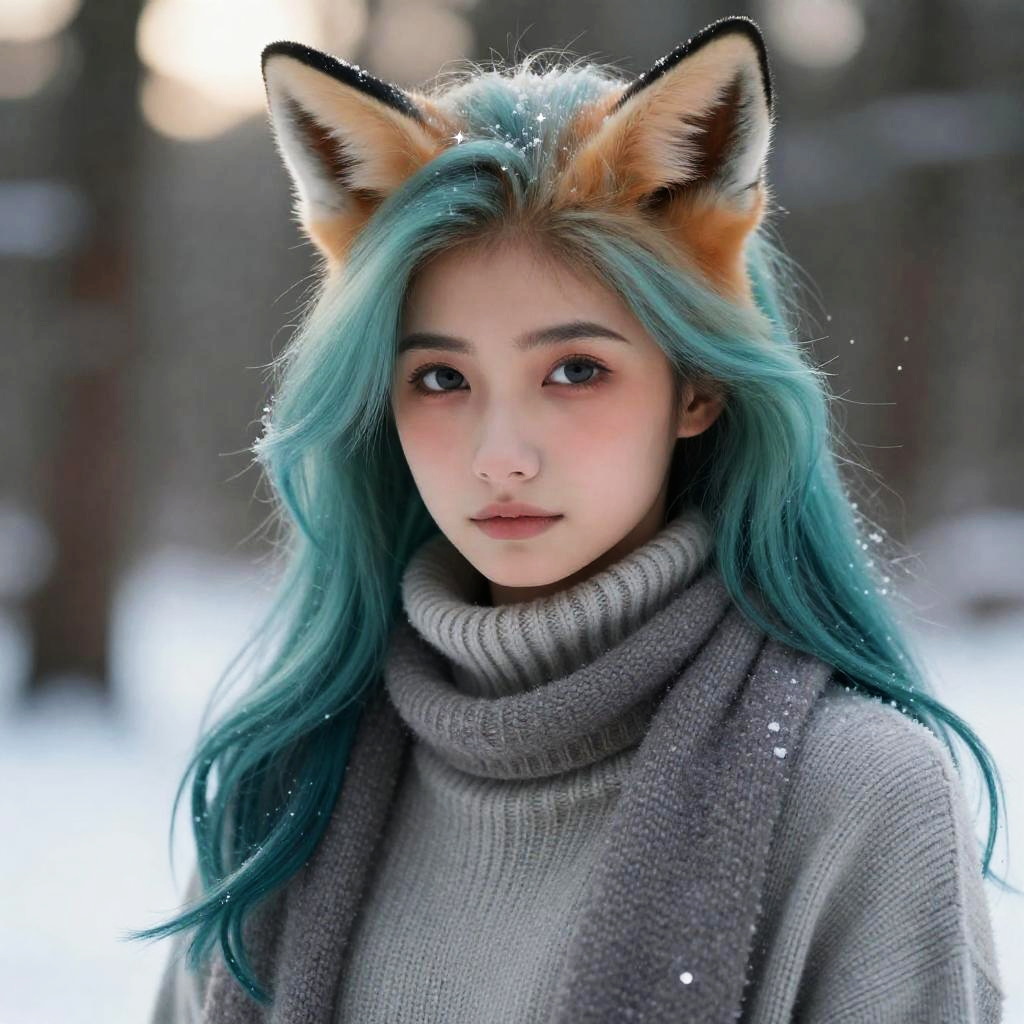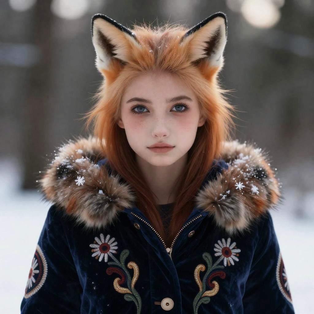 European Foxie Girl in Winter Forest