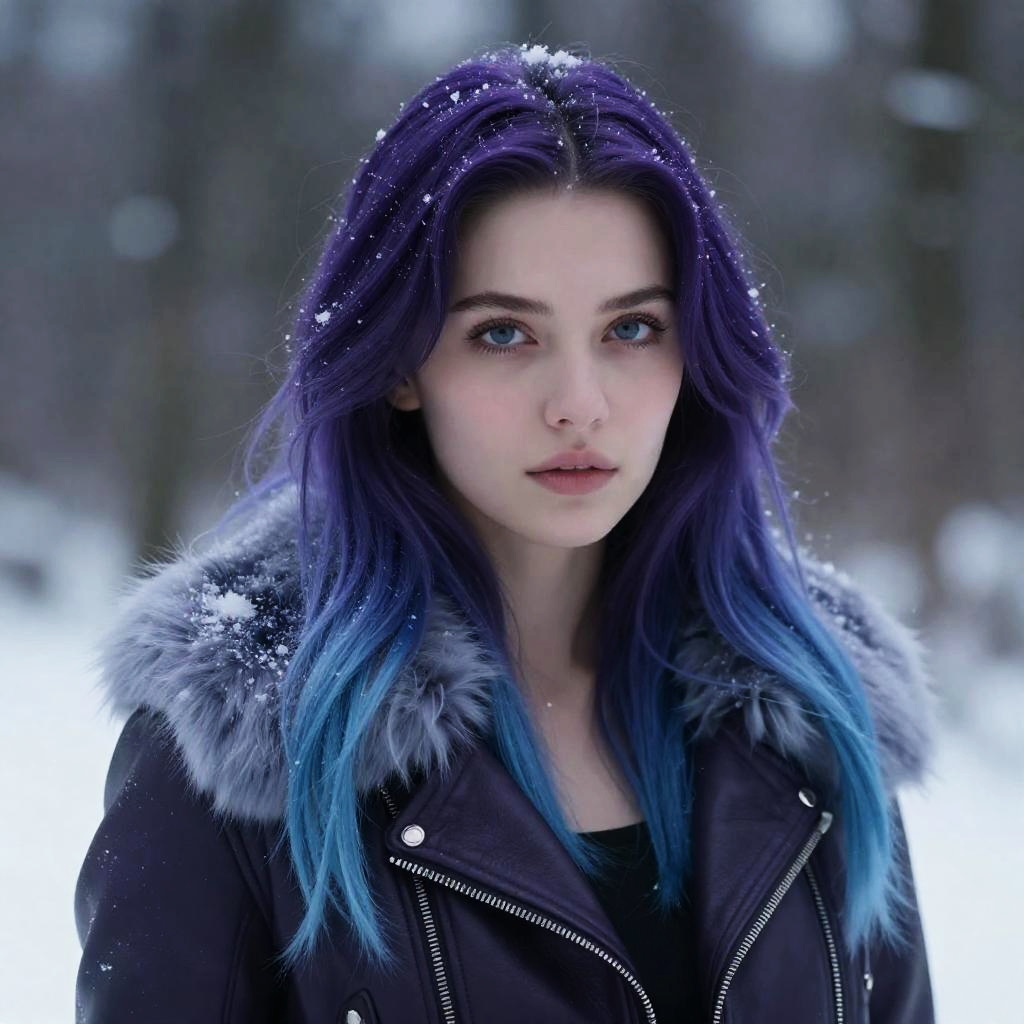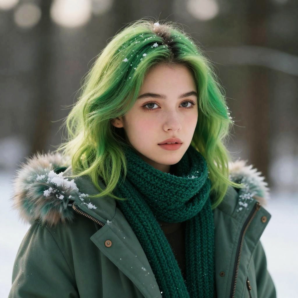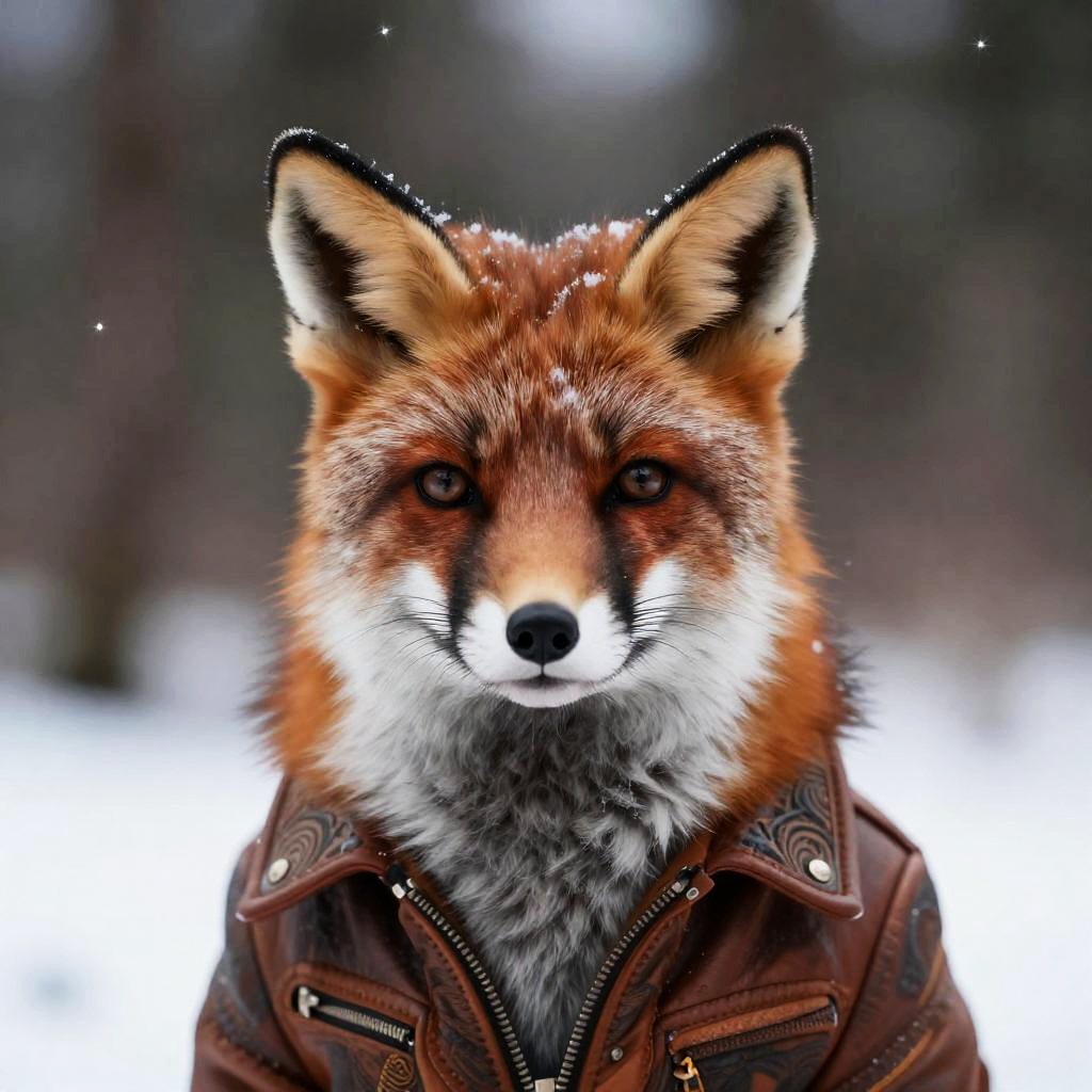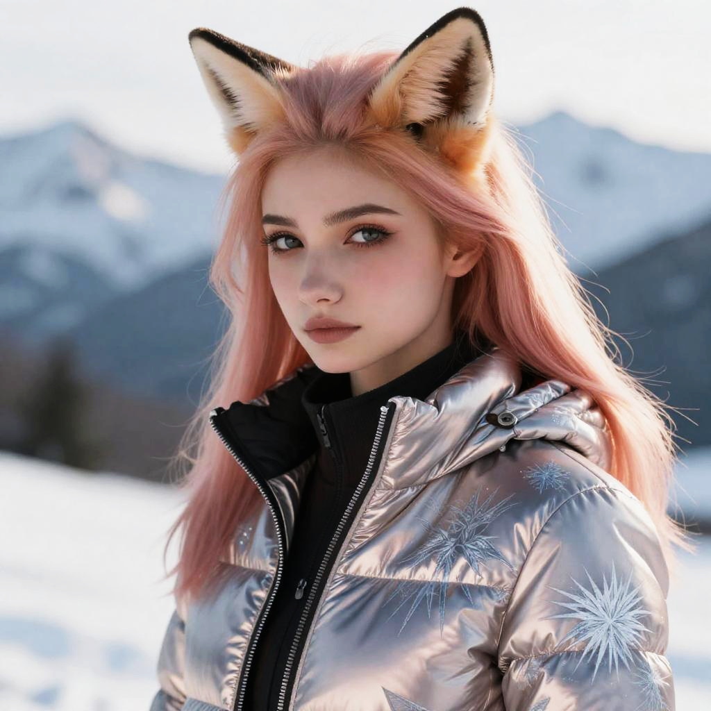 European Foxie Girl in Winter Forest