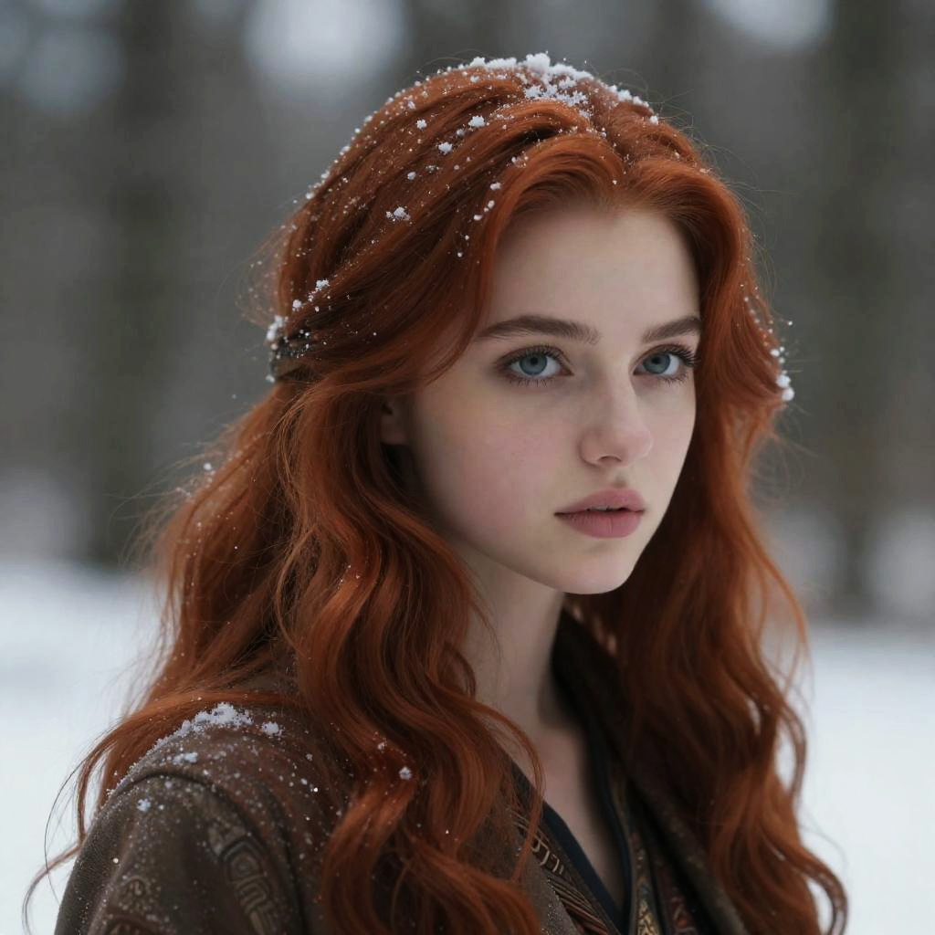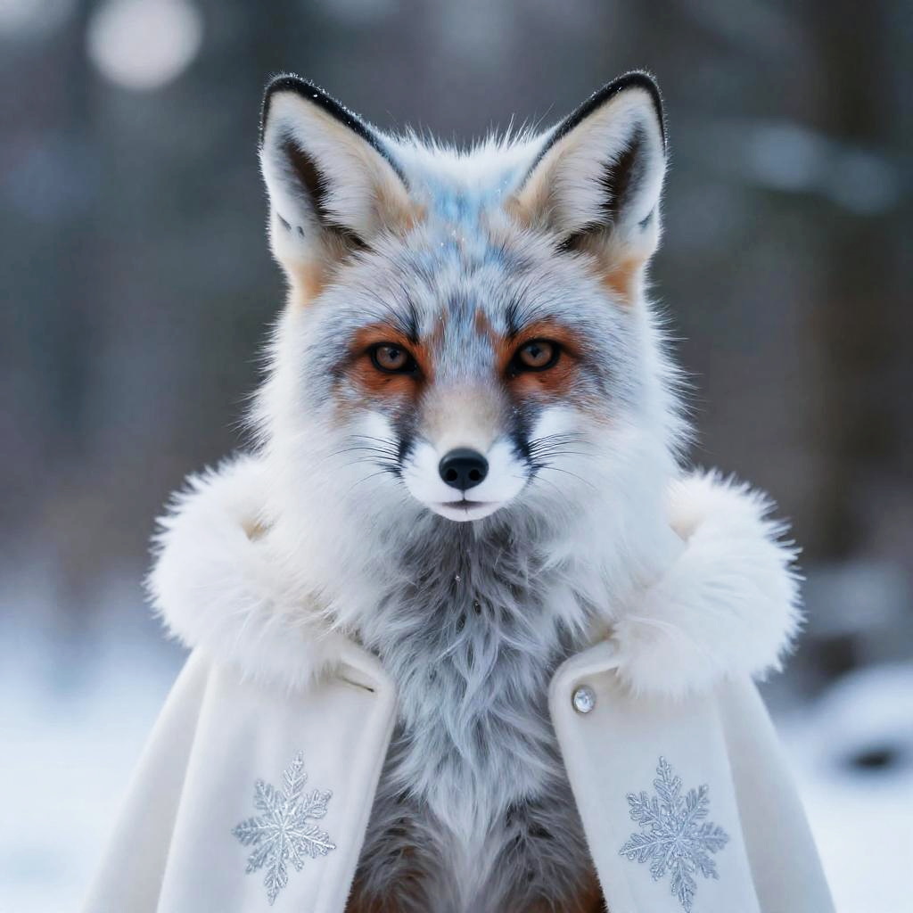 Foxie european girl, bronze to auburn, woolen cloak with intricate silver embroidery, winter forest, Snowflake, natural skin texture, 4k textures, soft cinematic light, photolab, intricate, elegant, highly detailed, sharp focus, ((((cinematic look)))), soothing tones, intricate details, low contrast, exposure blend, hdr, faded, hyperdetailed, backlighting, cowboy shot, 85mm, close-up, sparkle, award winning, best quality, 4K