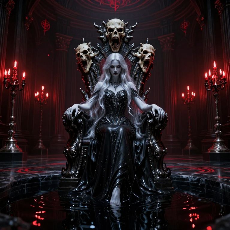 Her gown, a masterpiece of flowing white silk and shimmering gold embroidery, cascades around her, pooling at the foot of her throne, Her skin, flawless and radiant, seems almost unreal, as if carved from marble, Her face is the pinnacle of perfection: symmetrical, serene, and utterly divine, A cinematic analog photo of unparalleled detail, featuring the haunting visage of a Bone Knight, The extreme close-up focuses on the skeletal face, encased in a helmet crafted from bone and adorned with faintly glowing runes, The hollow sockets of their eyes burn with an intense, unearthly blue light, Their armor is intricately detailed, with dark metal inlaid with veins of glowing crimson, Mist swirls around their form, lit by pale moonlight piercing through dense, ancient trees, The forest is alive with ghostly whispers, and the faint hum of distant, spectral energy creates an eerie, cinematic atmosphere
