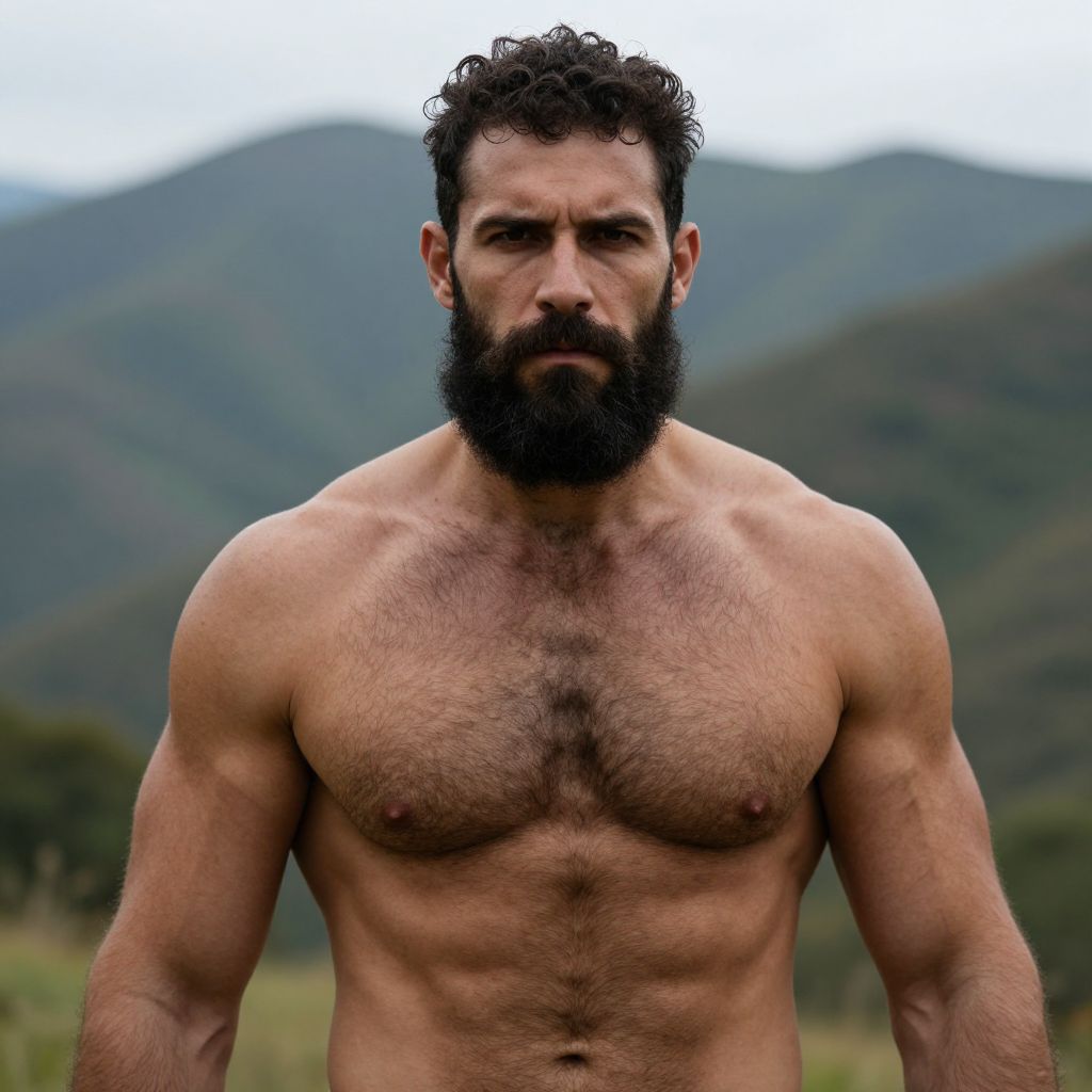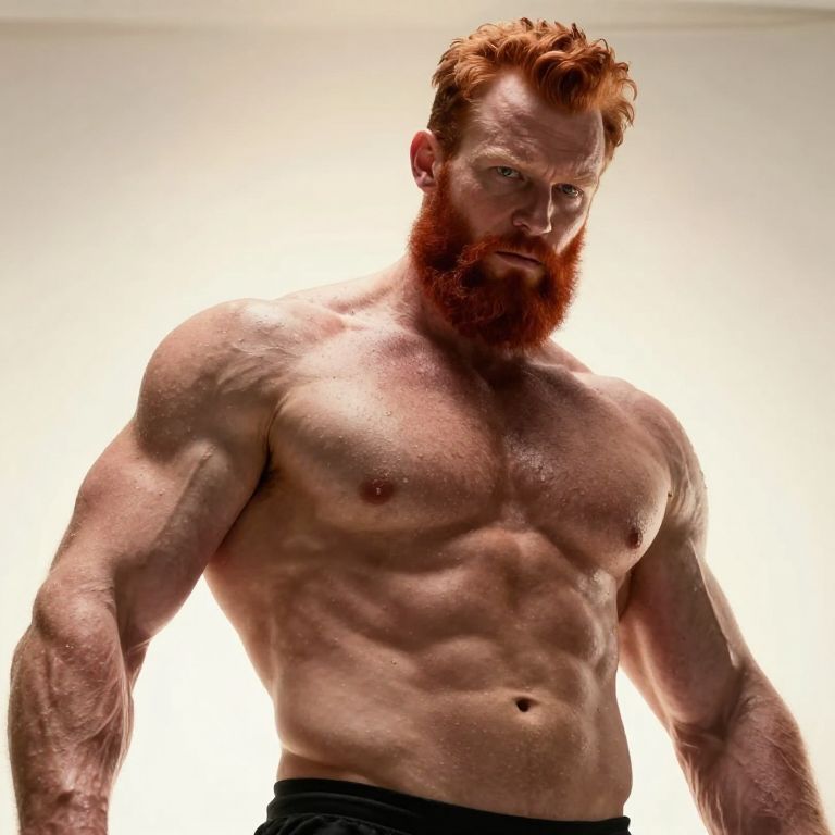 Style full shot, bottom-up view, bodybuilder, fairy skin, red hair, red beard, emerging from the light, cinematic,