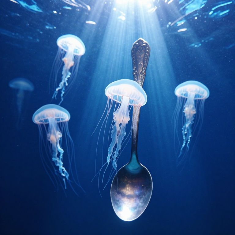 Under a silvery moon, fishermen navigate a tranquil sea, hauling glowing jellyfish that illuminate the water with ethereal blue light, creating a surreal dance between man and marine magic.