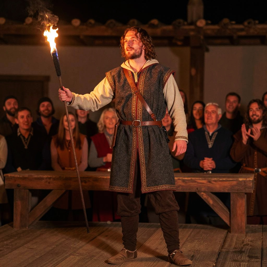 Medieval Bard Performing by Torchlight