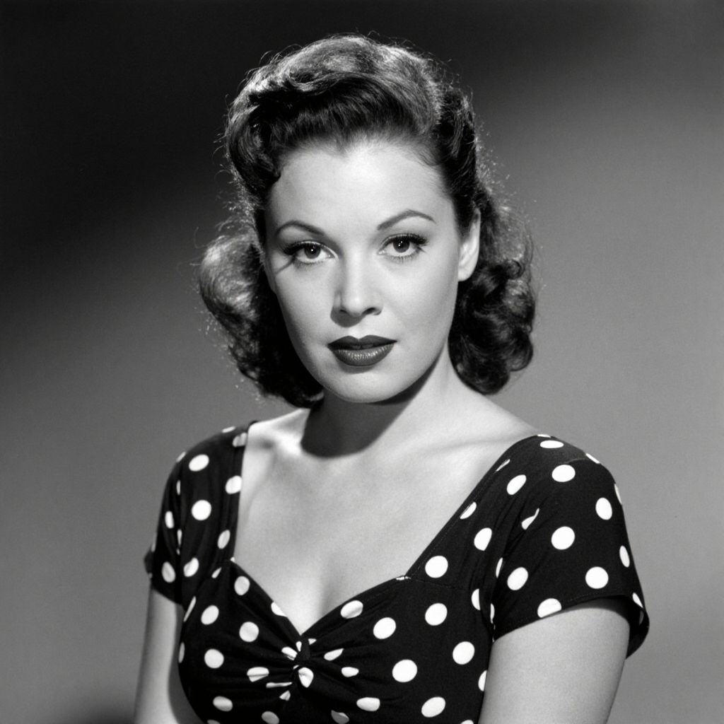 Vintage Black-and-White Polka-Dot Portrait