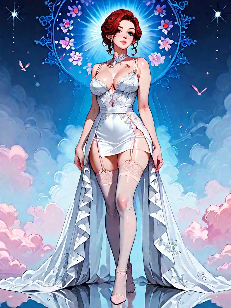 Full body, 1girl, dark_fantasy, nighttime, big boobs, fog, night mist, Elegant lace teddy, sheer black lace, deep V neckline, intricate floral patterns, adjustable satin straps, open back design, delicate scalloped edges, matching lace garter belt, soft silk stockings, rich burgundy color accents.