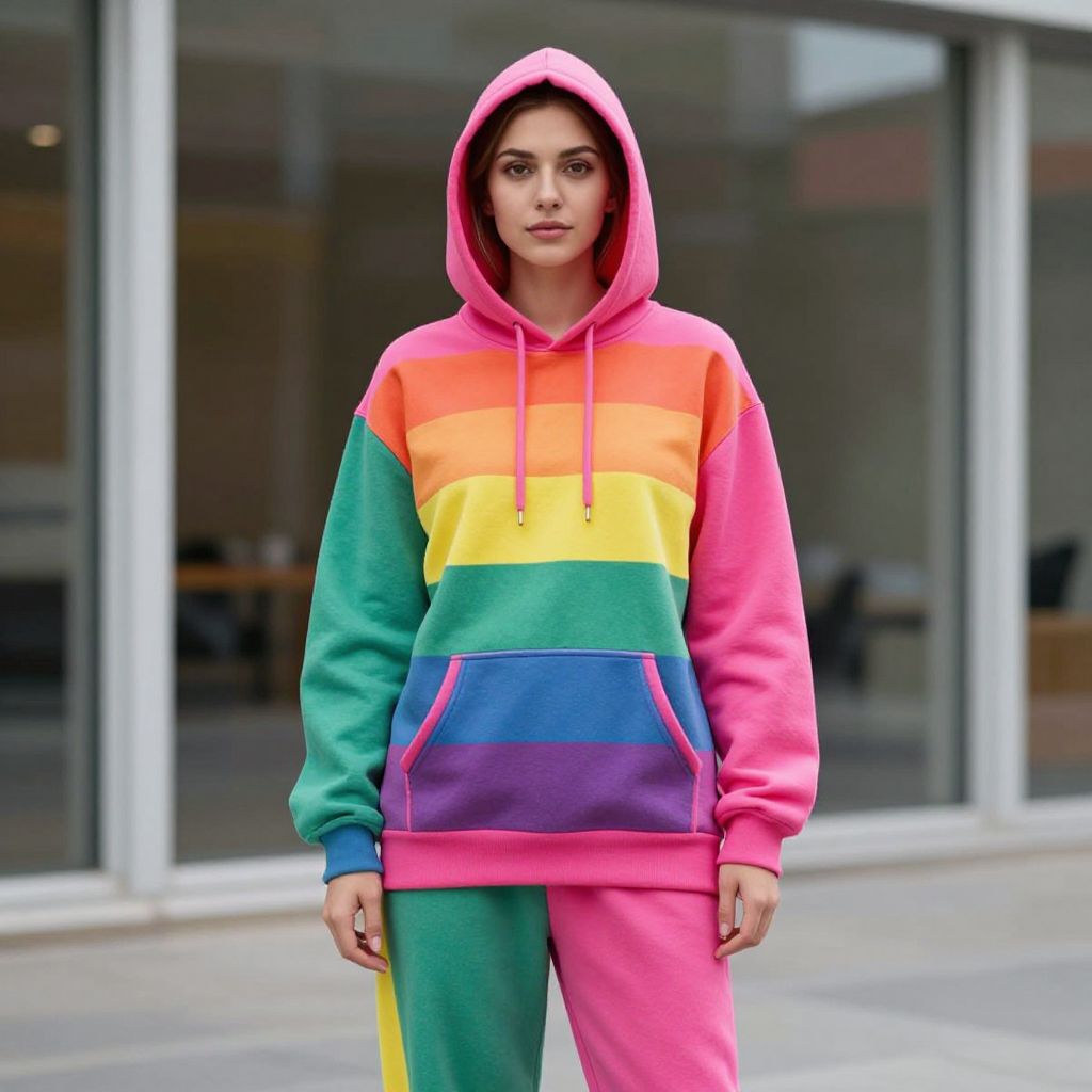 Rainbow Hoodie Fashion in Urban Setting