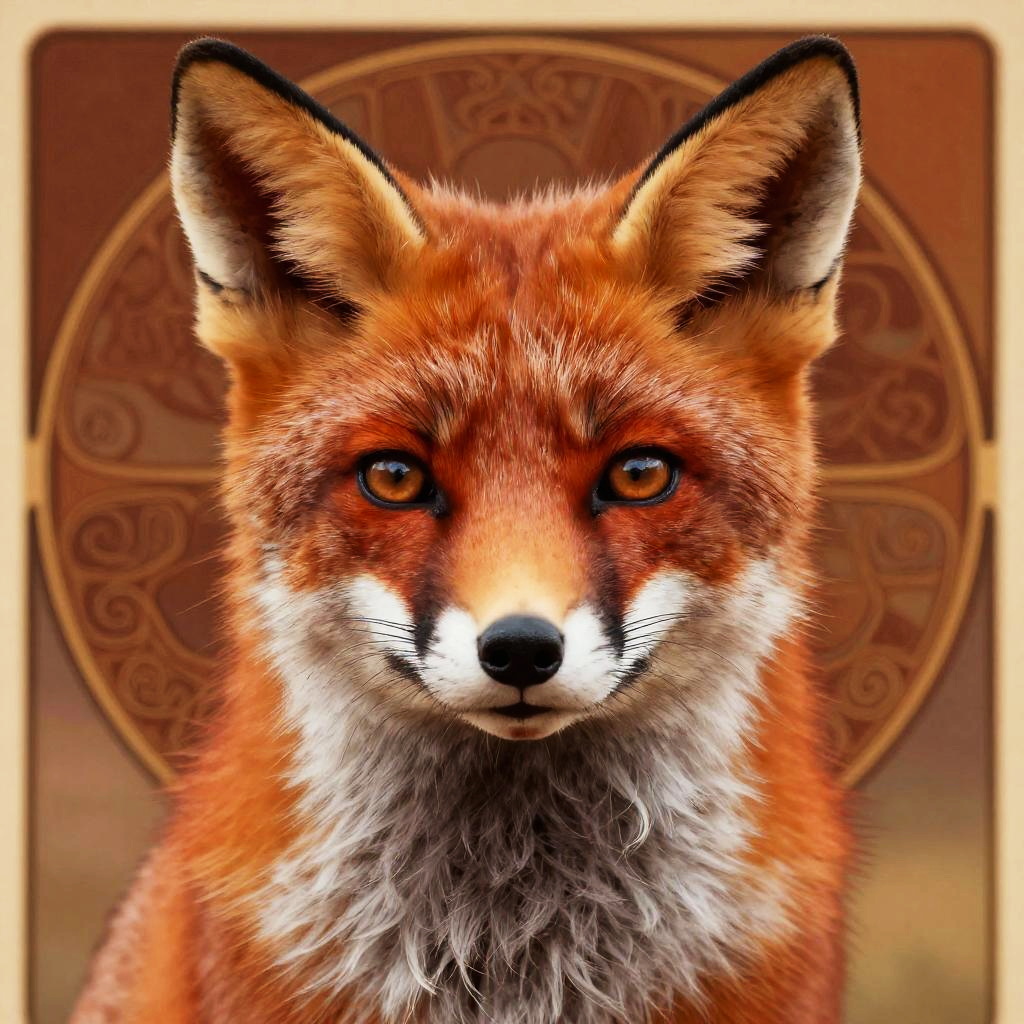 Spirited Red Fox Portrait Inspired by Art Nouveau