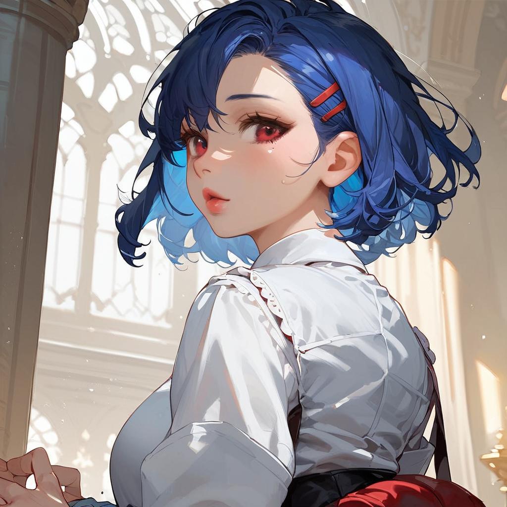 Charming Blue-Haired Girl Outdoors