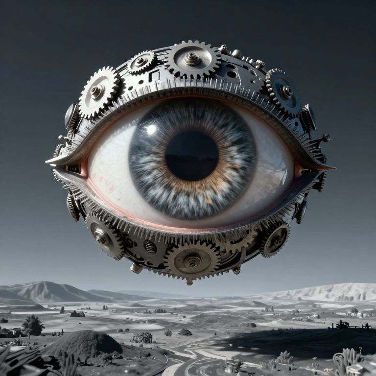 Giant Mechanical Eye Over Timeless World