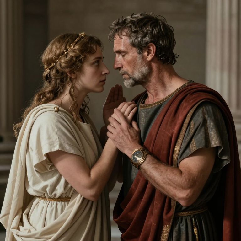 An intimate tableau of maternal urgency and political secrecy unfolds, as Papirius Praetextatus is entreated by his mother amidst the weighty atmosphere of ancient Rome, where whispers of power intertwine with the fragility of familial bonds.