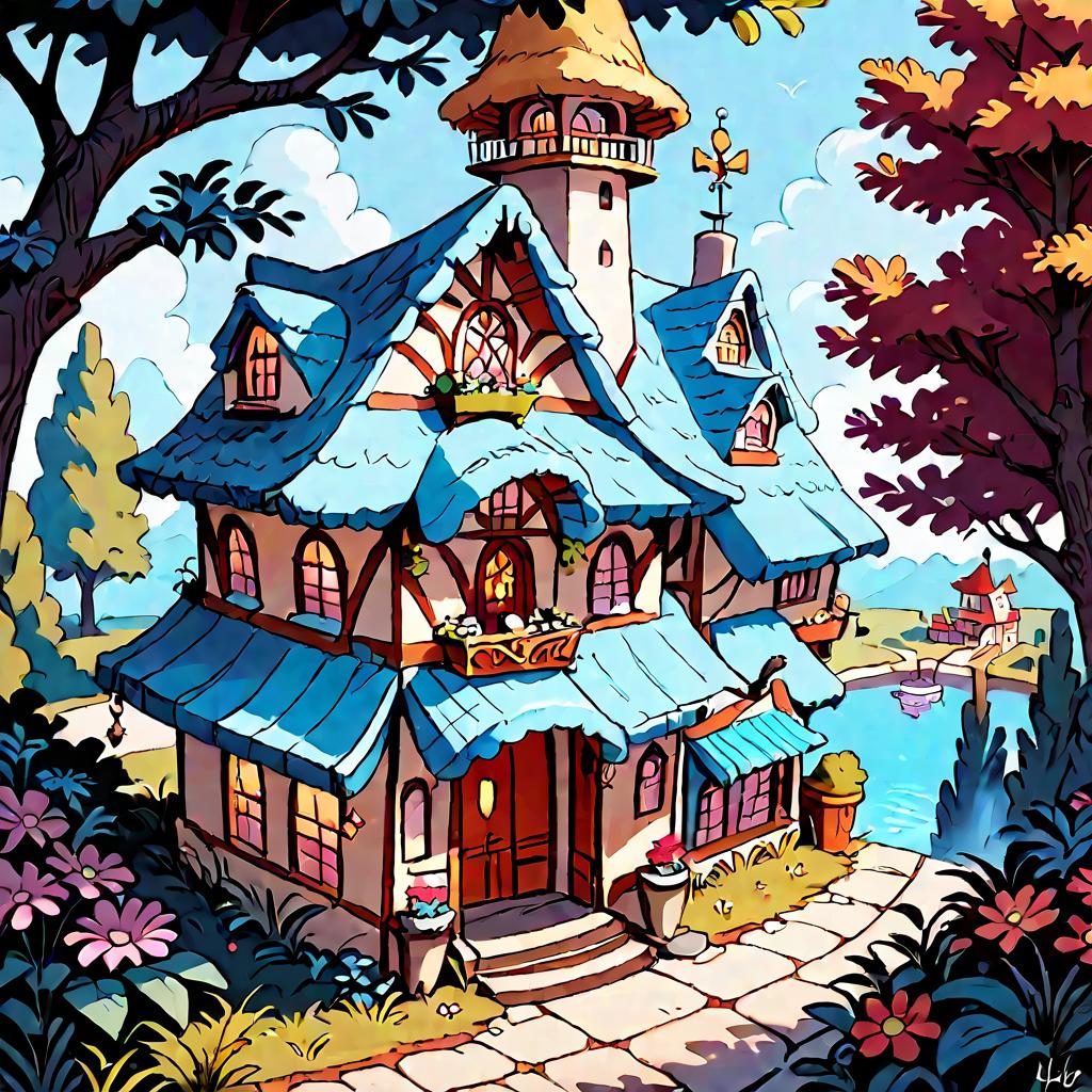 Score_9, score_8_up, score_7_up, rating_safe , world of warcraft, cozy town, shops, trees, fountain, warcraftstyle, scenery, toony, detailed