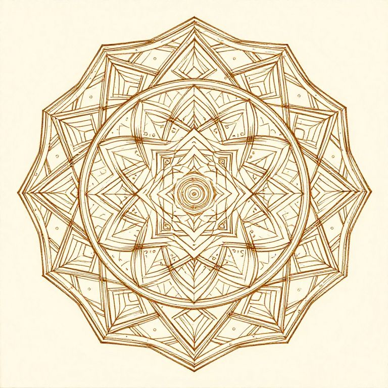 An intricate mandala radiates serenity and infinite connection, its geometric patterns weaving a tapestry of timeless wisdom and meditative stillness.