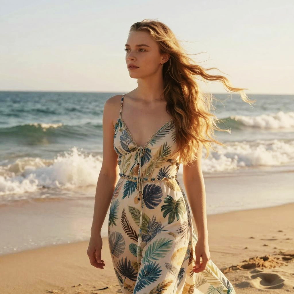Anya Taylor-Joy at Vibrant Beach Sunset