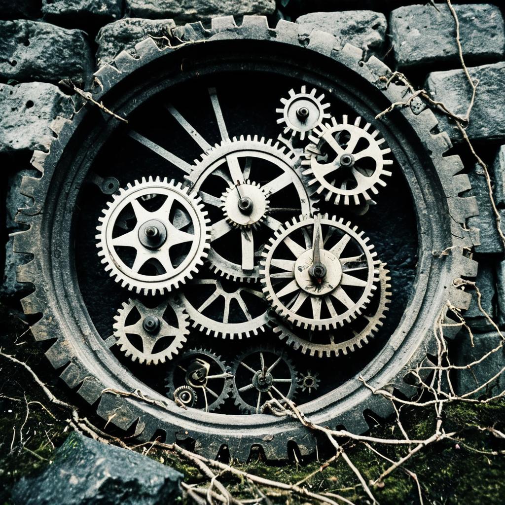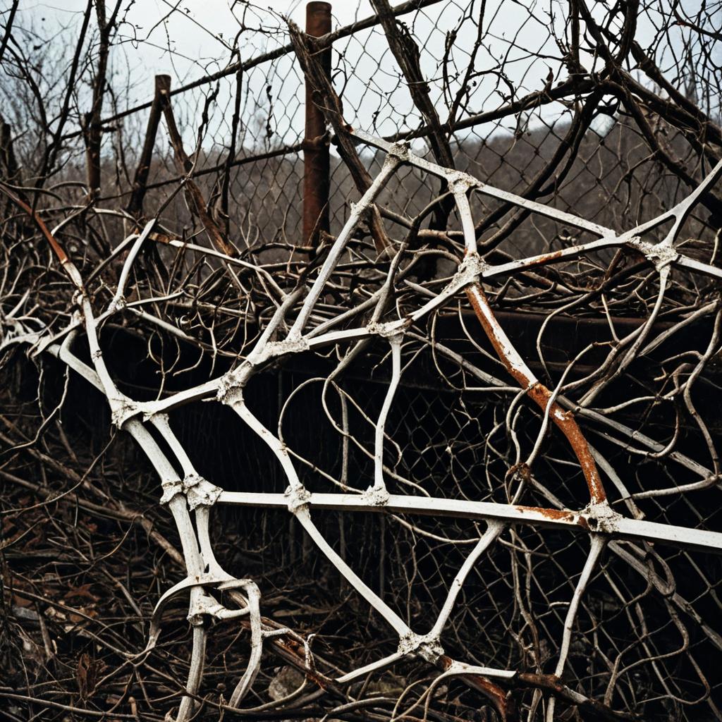 Bridged Bone Fragments with Rusted Iron Fence Entangled in Dried Vines