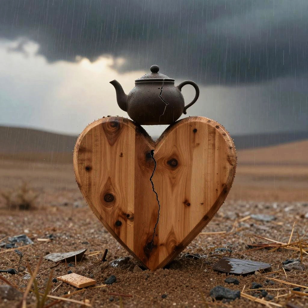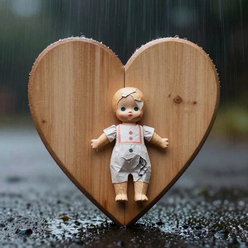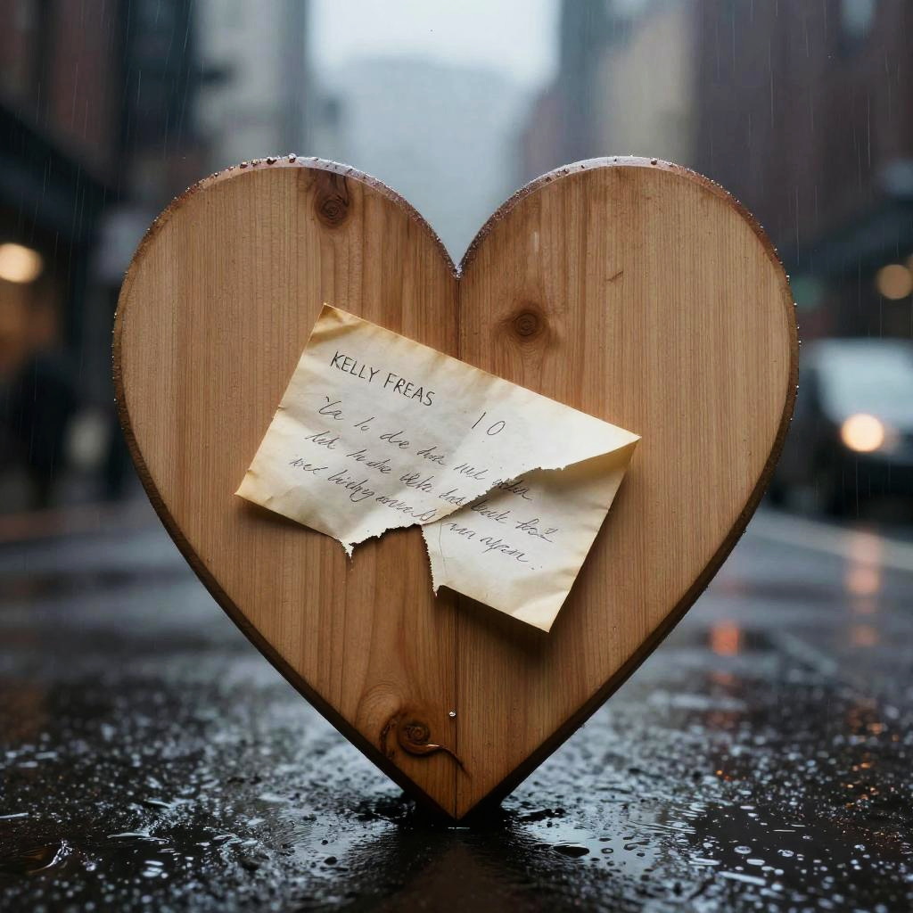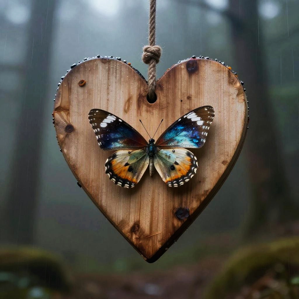 A wooden heart in the rain with a rusted padlock :: poignant, dramatic, mysterious :: geometric abstraction, rim light :: by M.C. Escher