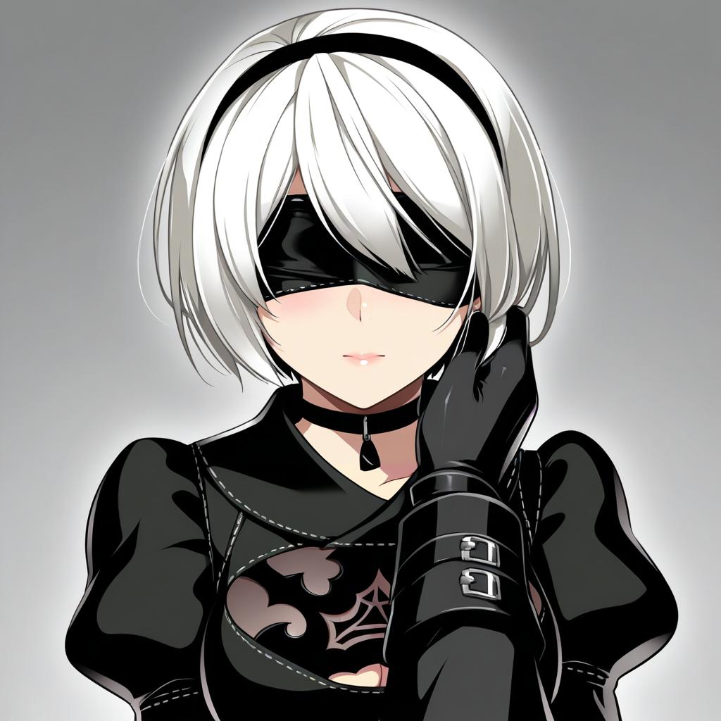 9s (nier:automata), nier (series), 1boy, white hair, short hair, black gloves, black choker, long sleeves, black blindfold, by artist caffein, illustrious