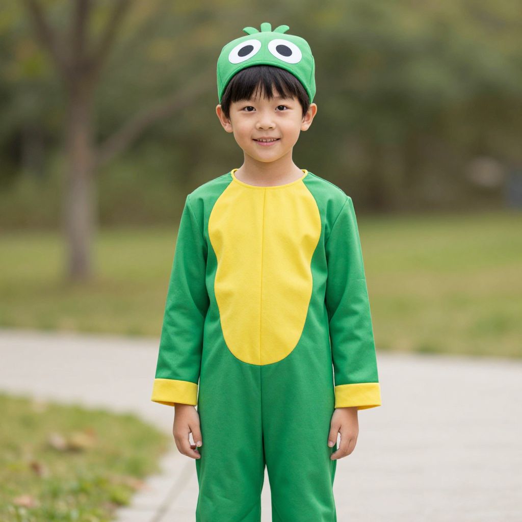 Boogers Boy Costume, young boy wearing a green and yellow costume