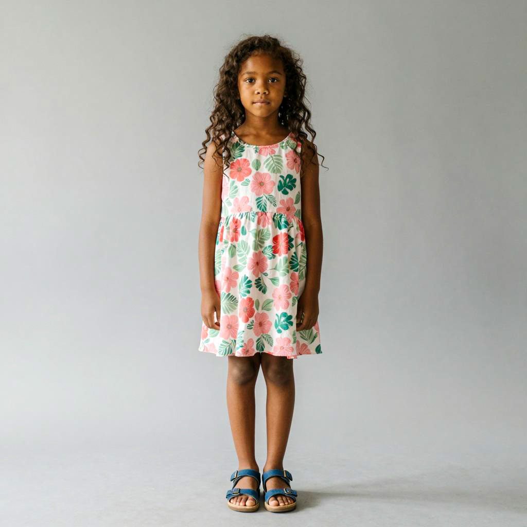 Young Girl in Floral Dress Standing