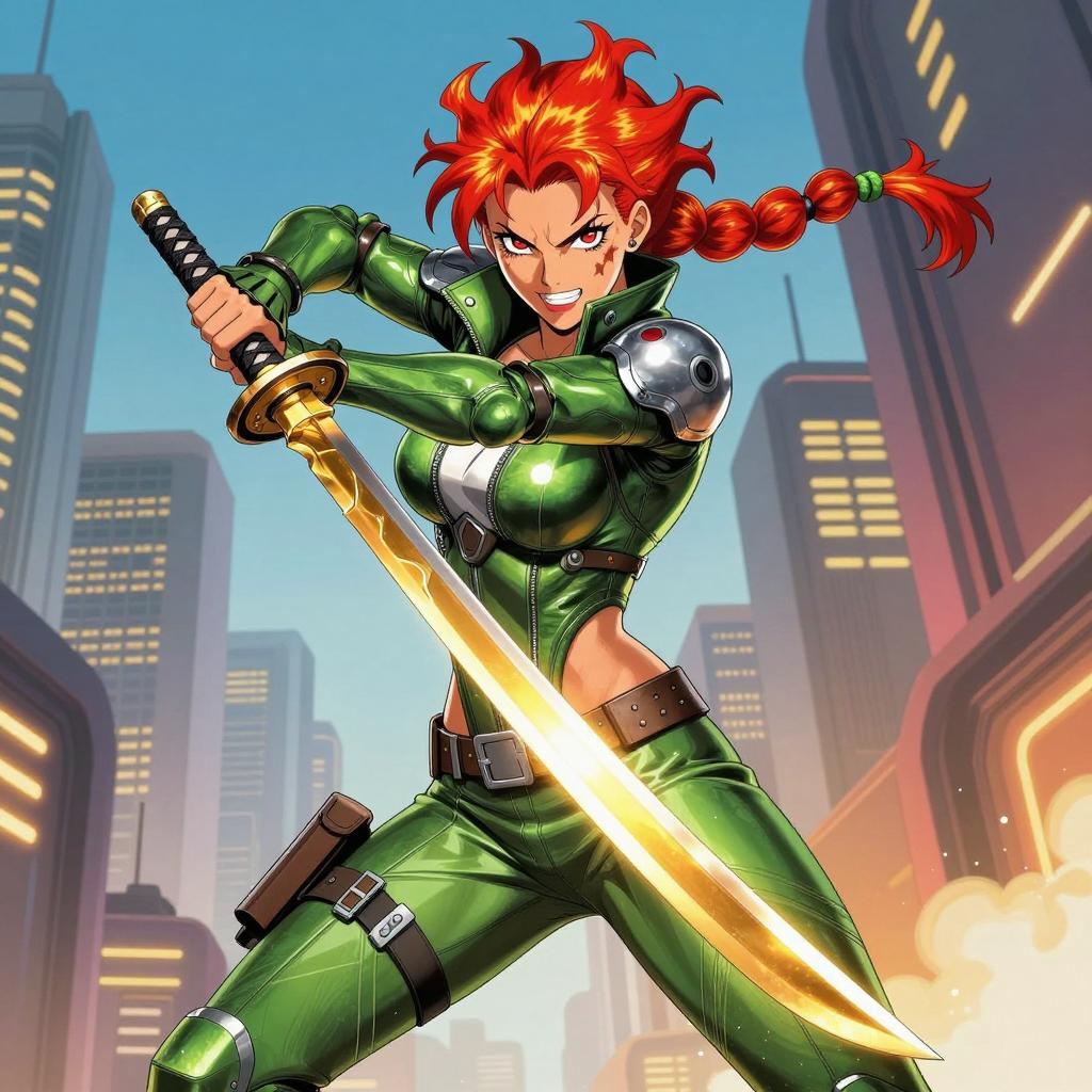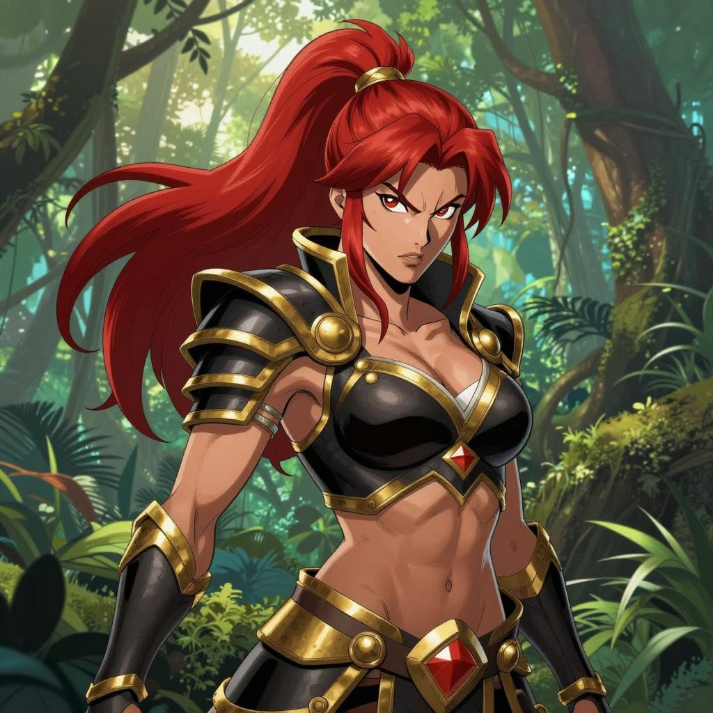 Fierce Red-Haired Warrior in Golden Armor