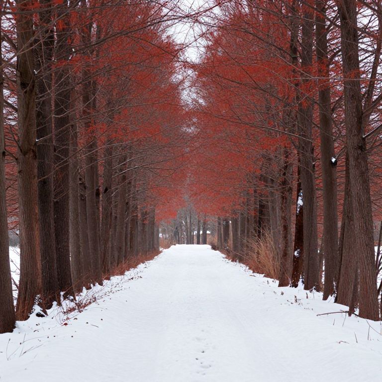 Amidst the hushed stillness of winter, the crimson embrace ofGrant Grove's towering trees cradles a path of pristine snow, inviting introspection and a profound sense of solitude, where the weight of silence and the warmth of memory intertwine.
