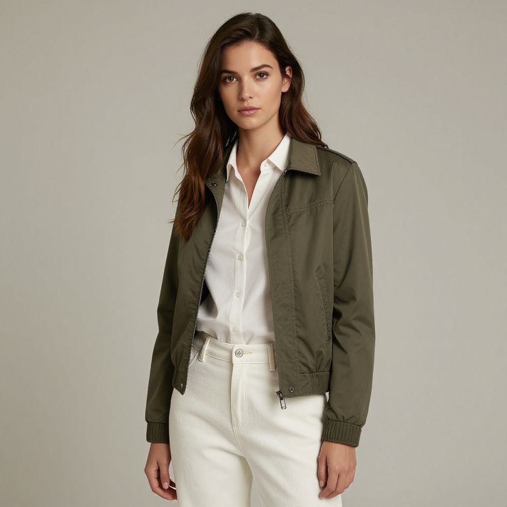 Casual Woman in Olive Green Jacket