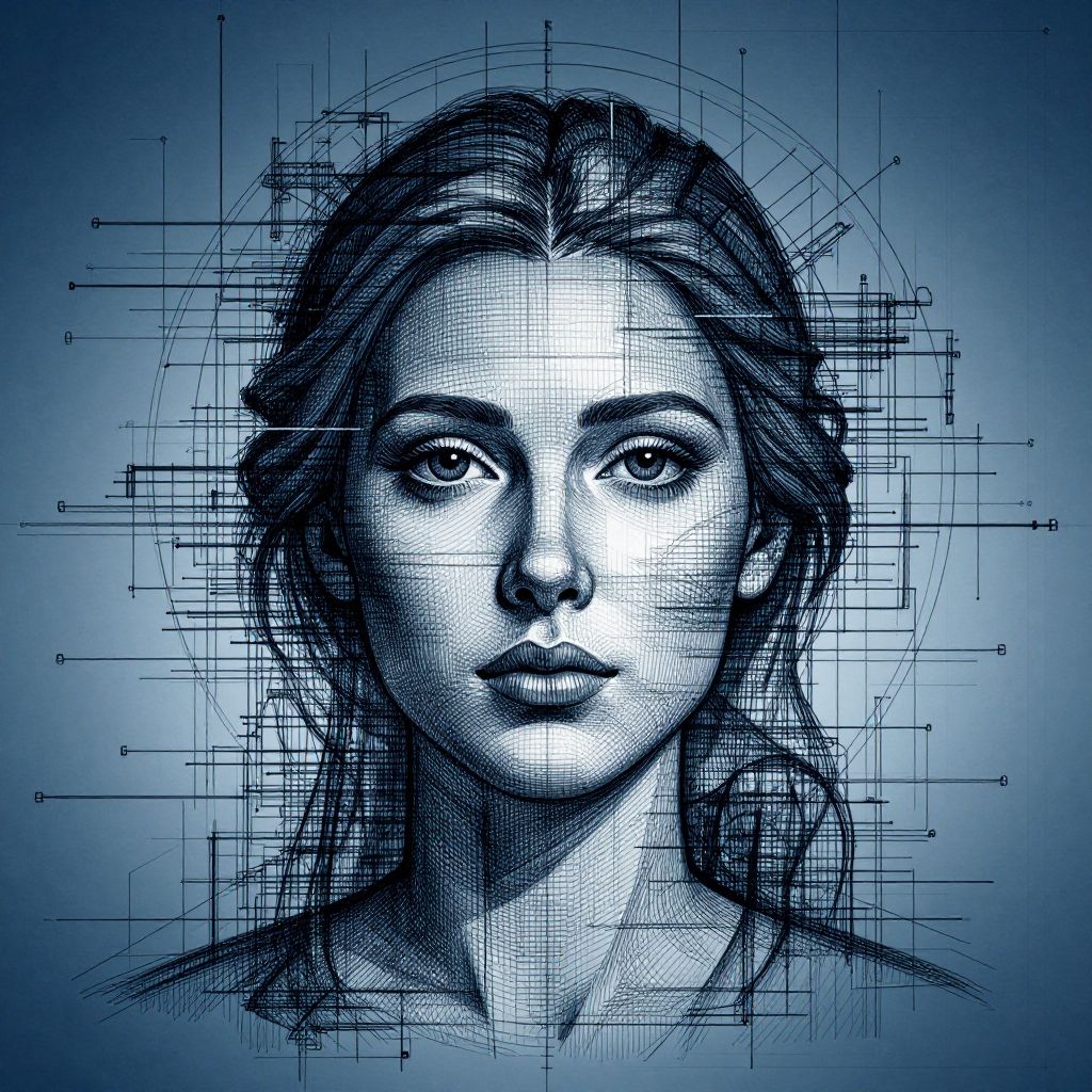 Intricate Blueprint Style Woman's Face