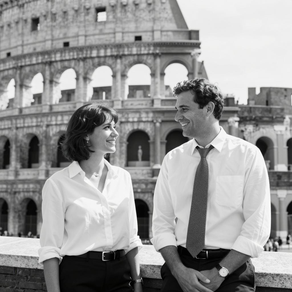 Black-and-white photo capturing a man in a dark suit and white shirt shaking hands with a woman wearing a light-colored jacket and dark skirt at a crowded press event. Several photographers with professional cameras surround them, actively taking pictures. The scene conveys a moment of greeting or agreement with a lively media presence.