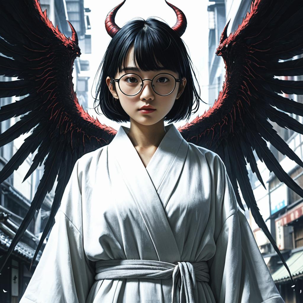 Japanese Girl with Demon Wings and Glasses