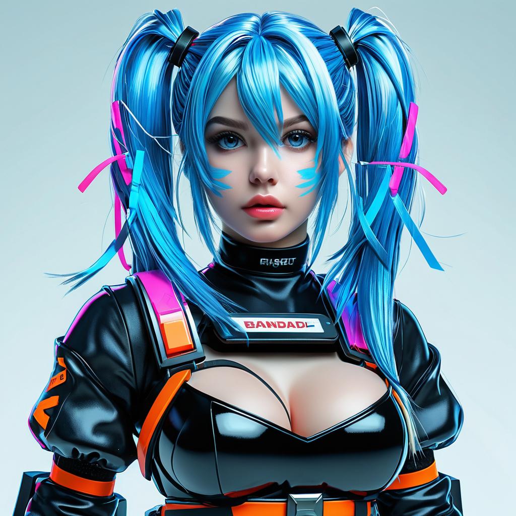 ((masterpiece)), (best quality), (detailed), (hires), (shining face, shining body), neonfx, neon_valorant, 1girl, solo, looking at viewer, blue eyes, blonde hair, gloves, navel, twintails, blue hair, multicolored hair, parted lips, black gloves, belt, pants, hand on hip, floating hair, bandaid, bandaid on face, electricity, animification, bandaid on nose