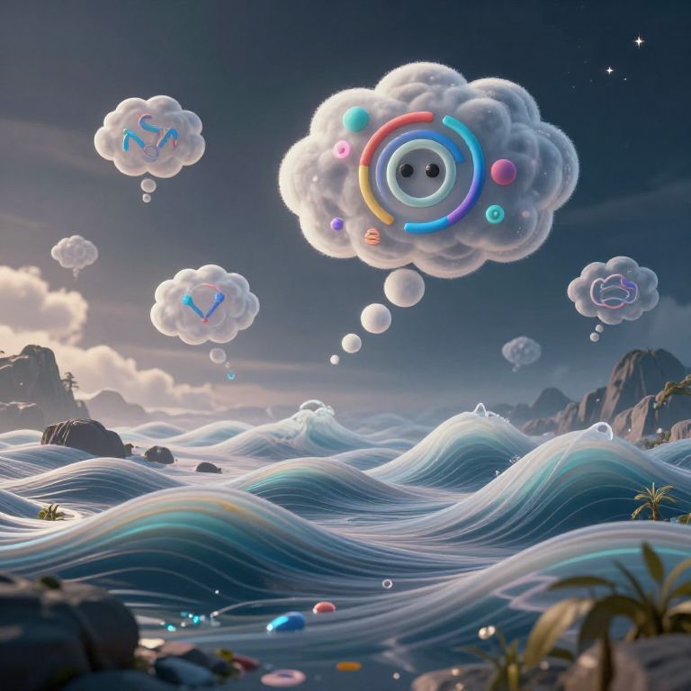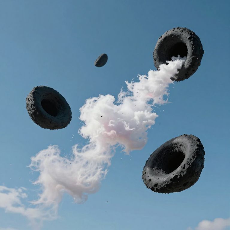 Black holes float weightlessly in an azure sky, gently swallowing clouds while spitting out cotton candy made of stardust.